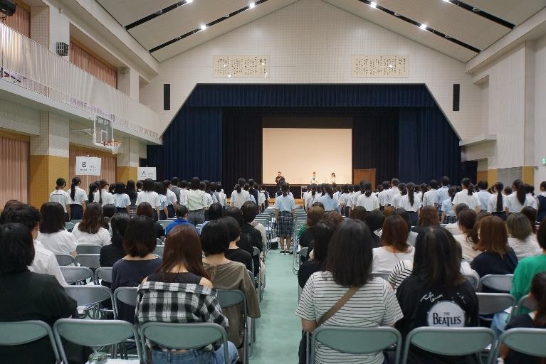 9月6日(土)に第2回オープンスクールを開催いたしました。当日は、多くの生徒ならびに保護者様にご参加いただきました。吹奏楽部によるウェルカムパフォーマンスをおこない、その後、生徒会長挨拶、学校説明、博多女子伝統の礼法セミナー、在校生徒による学科の紹介、部活体験などをおこないました。次は10月25日(土)と11月15日(土)に実施します。博女の良さがたくさんありますので、ぜひ次回オープンスクールにご参加ください。