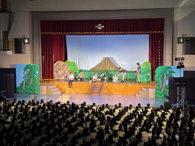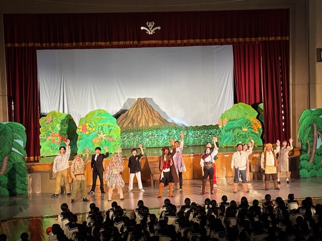 作品は、無人島に漂着した十五人の少年たちが、困難や対立を乗り越えながら協力し、知恵と勇気で生き抜く姿を描いたものです。迫真の演技と力強いメッセージに、生徒たちは強く心を打たれました。特に「仲間を信じること」「あきらめずに生きること」の大切さを実感し、自分たちのこれからの生き方を考える貴重な機会となりました。観劇後には、「困難に向き合う勇気をもらった」「自分も仲間と支え合って生きていきたい」といった感想が聞かれました。今回の公演を通して、生徒一人ひとりが“生きる力”について深く考える素晴らしい時間となりました。