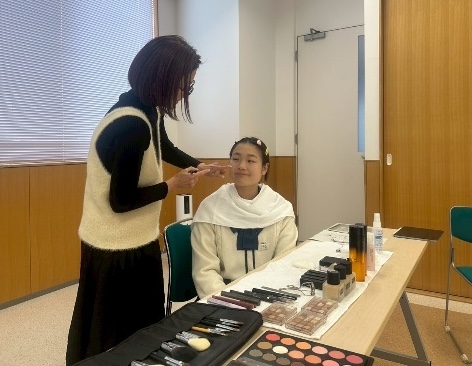 1月30日(金)に、卒業を控えた3年生を対象にオフィスメイク講座を実施しました。当日は麻生美容専門学校より講師の先生をお招きし、代表生徒をモデルにオフィスシーンなどを想定したメイクを実演していただきました。清潔感や信頼感を与えるビジネスメイクのポイントや、時・場面に応じた身だしなみについて学び、社会人に向けた意識を高める有意義な時間となりました。